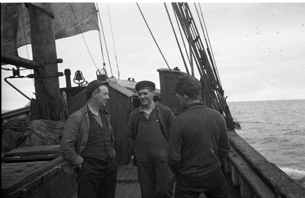 Bygdnes till vänster och Zapffe till höger, i övrigt okänd besättningsman på Isbjörn, sannolikt på väg till Vitön.
