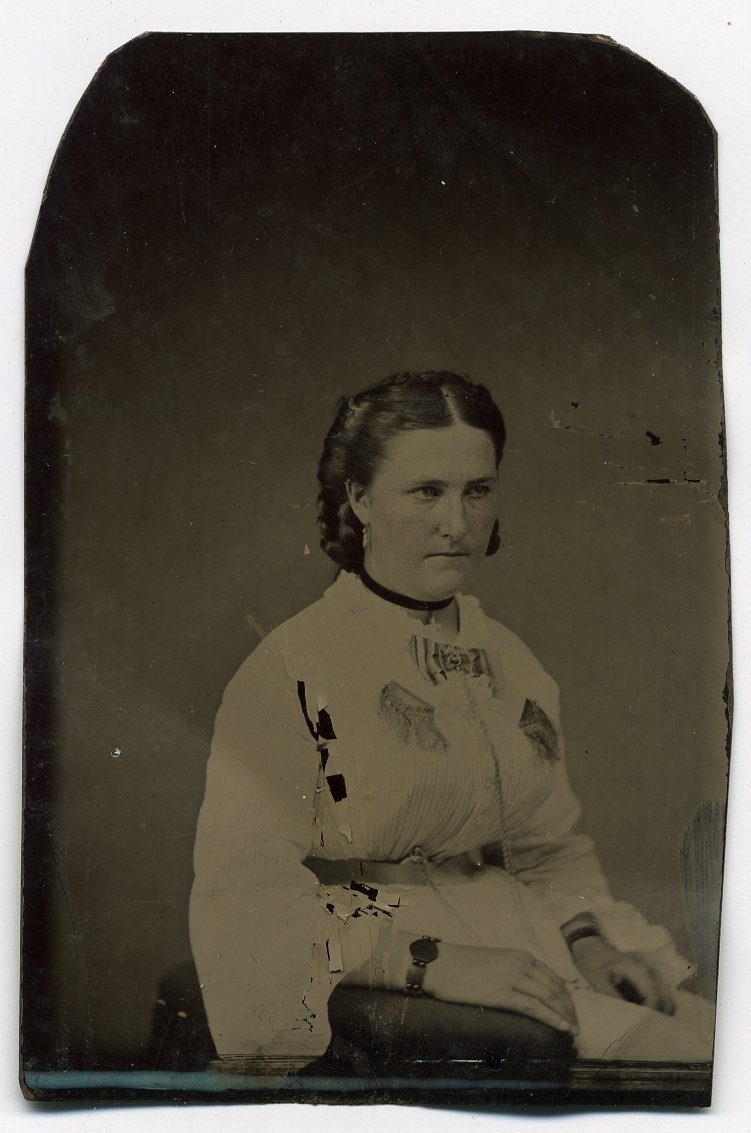 Dagerrotypi: porträtt av okänd kvinna, möjligen Helga Mathilda Hansson med koppling till Aranäs i Gränna socken.