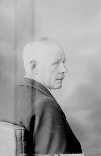 Bröstbild av en sittande man, fotograferad snett bakifrån.