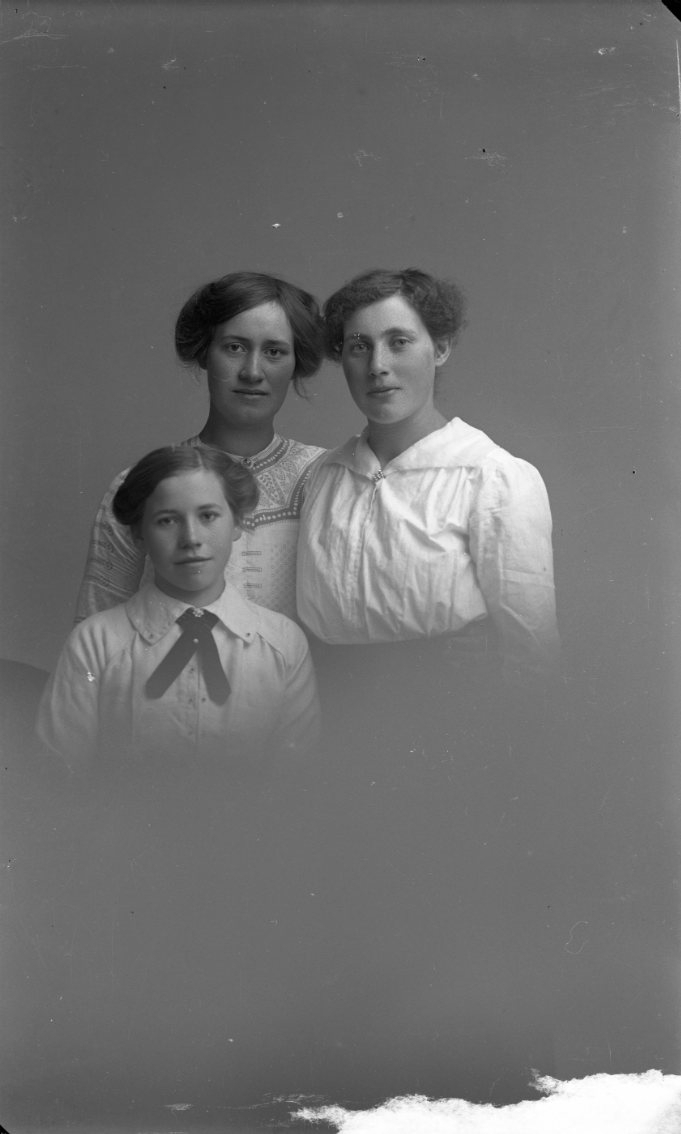 Gruppbild med tre unga kvinnor: Elvira Karlsson, Hanna Karlsson och Edit Lindkvist.