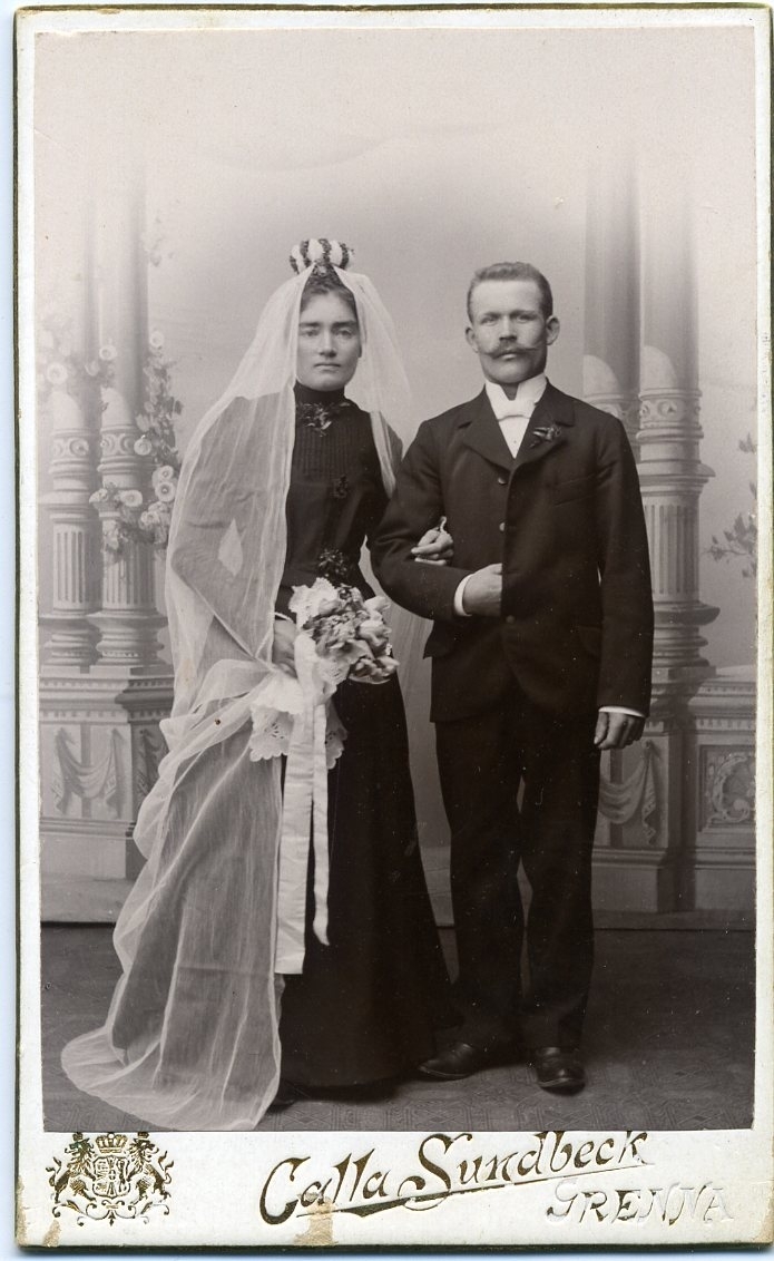 Kabinettsfotografi: porträtt av okänt brudpar.