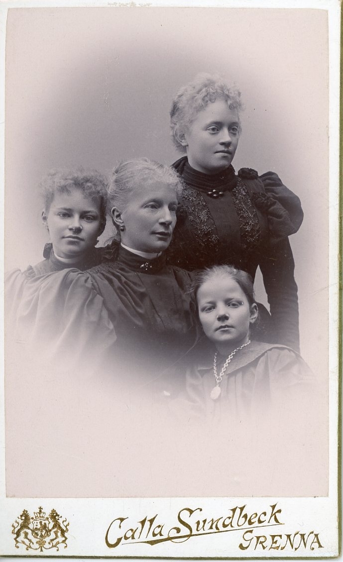 Kabinettsfotografi: en grupp med en mamma och hennes tre döttrar.