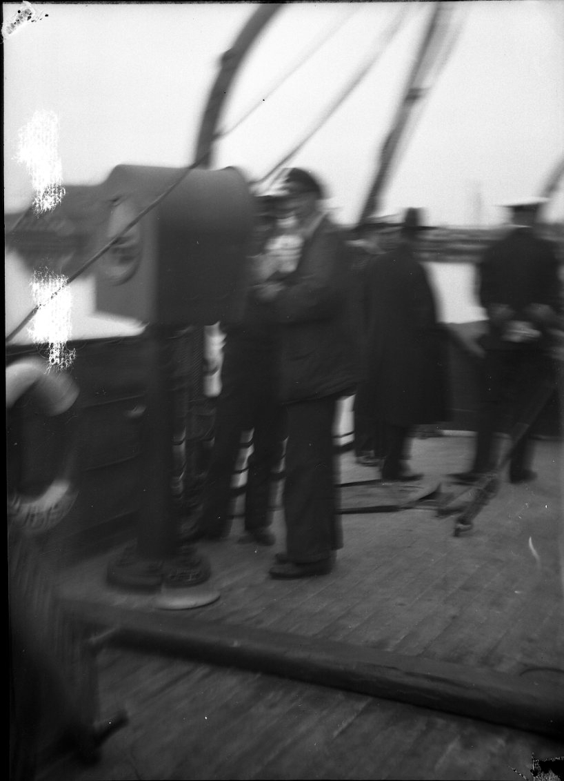 Suddig bild, sannolikt ombord på kanonbåten HMS Svensksund.