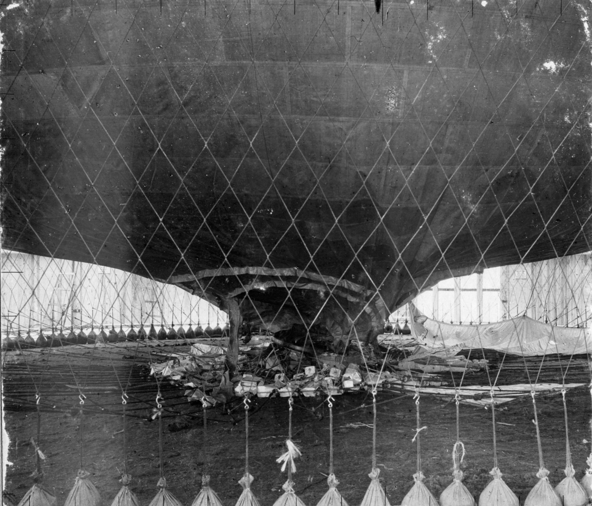 "Ballongens undersida", hållen på plats av sandsäckar.