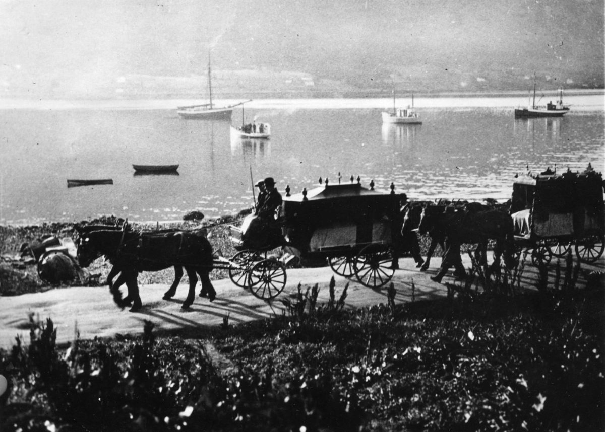Kistorna förs från Kysthospitalet till domkyrkan/Andrées och Strindbergs kistor förs till Kysthospitalet.