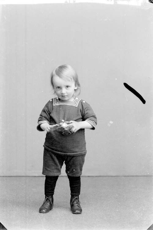 Åke Larsson-Ölmeskog, en liten pojk med en leksabil eller cykel i handen.