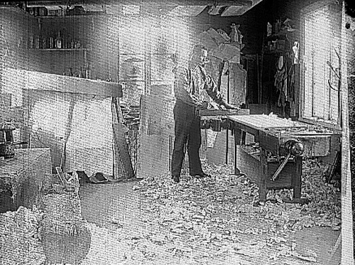 Snickarmästaren och snidaren Axel Johansson i sin verkstad.