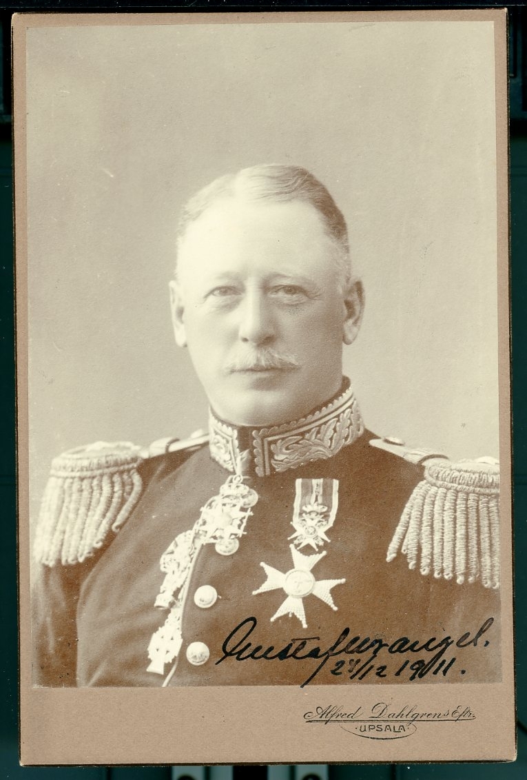 Kabinettsfotografi: Gustaf Wrangel i uniform med medalj och kraschan på bröstet.