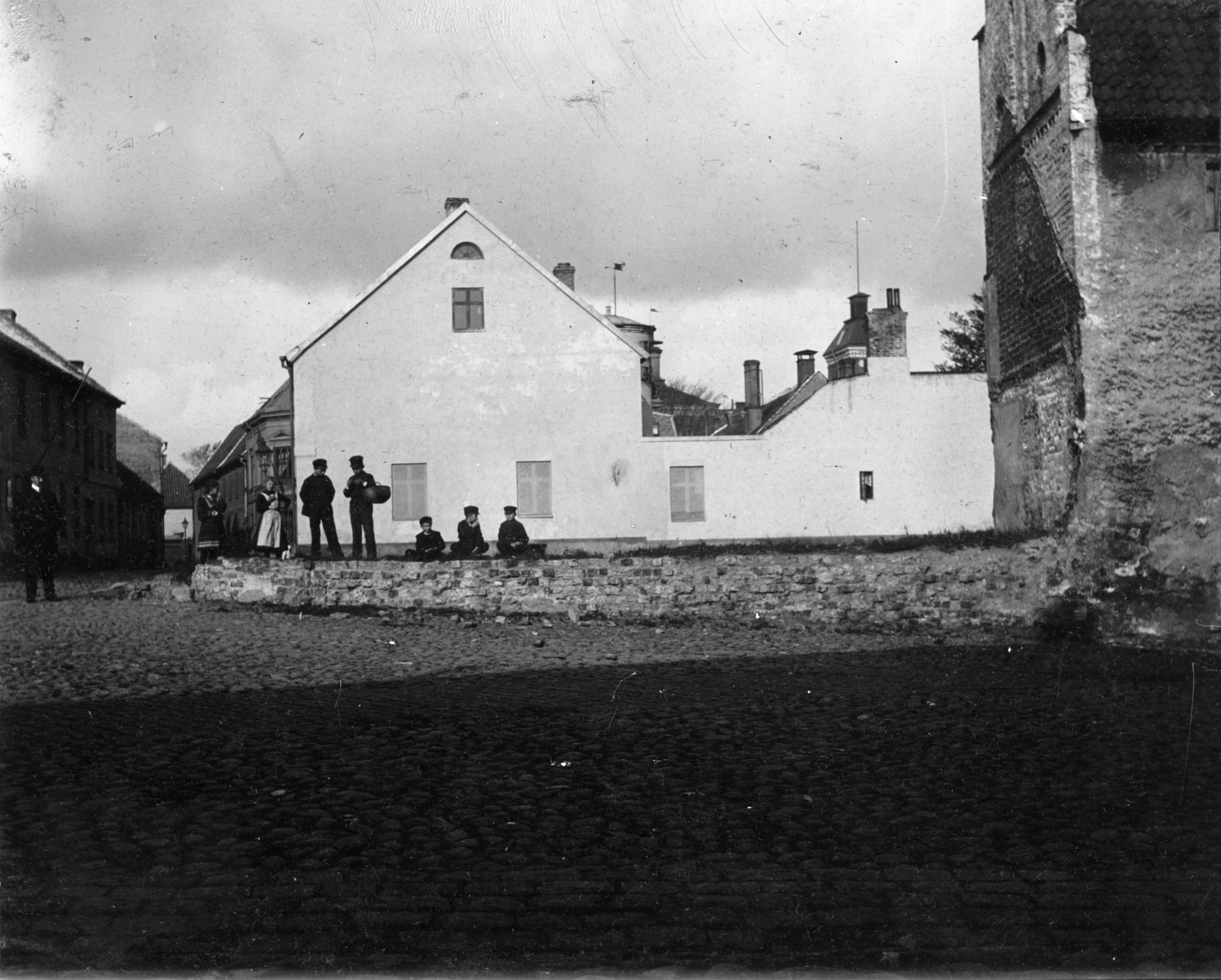 Delar av kyrkans gavel efter rivning av intilliggande fastighet.