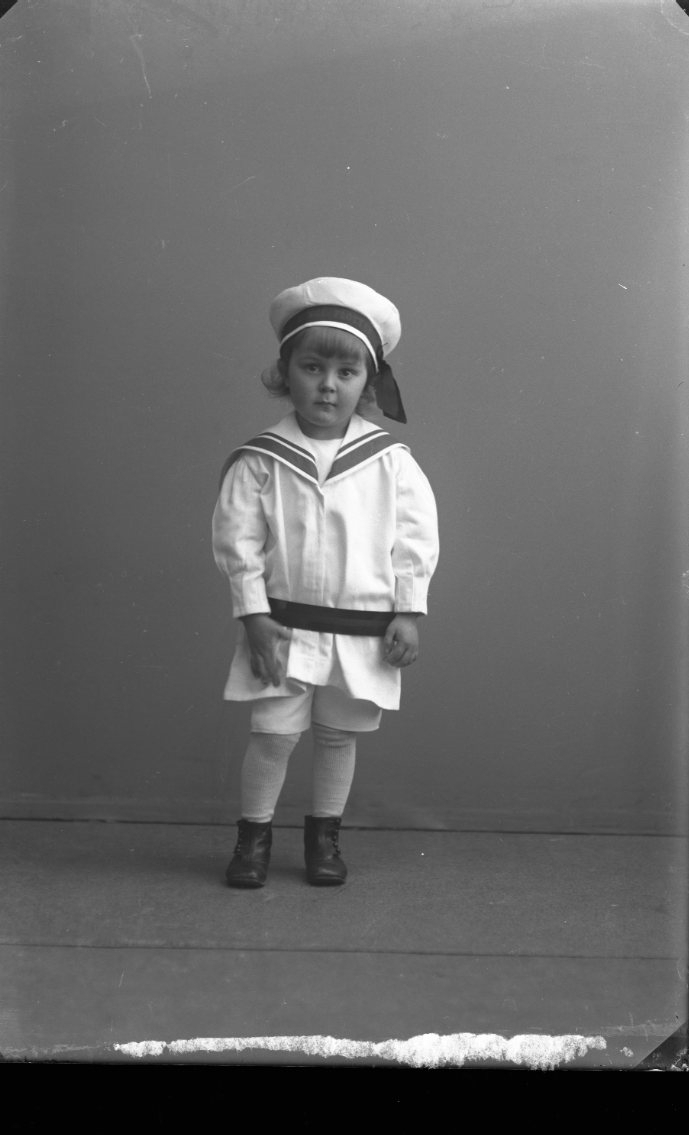 Porträtt av en liten pojke i sjömanskostym.