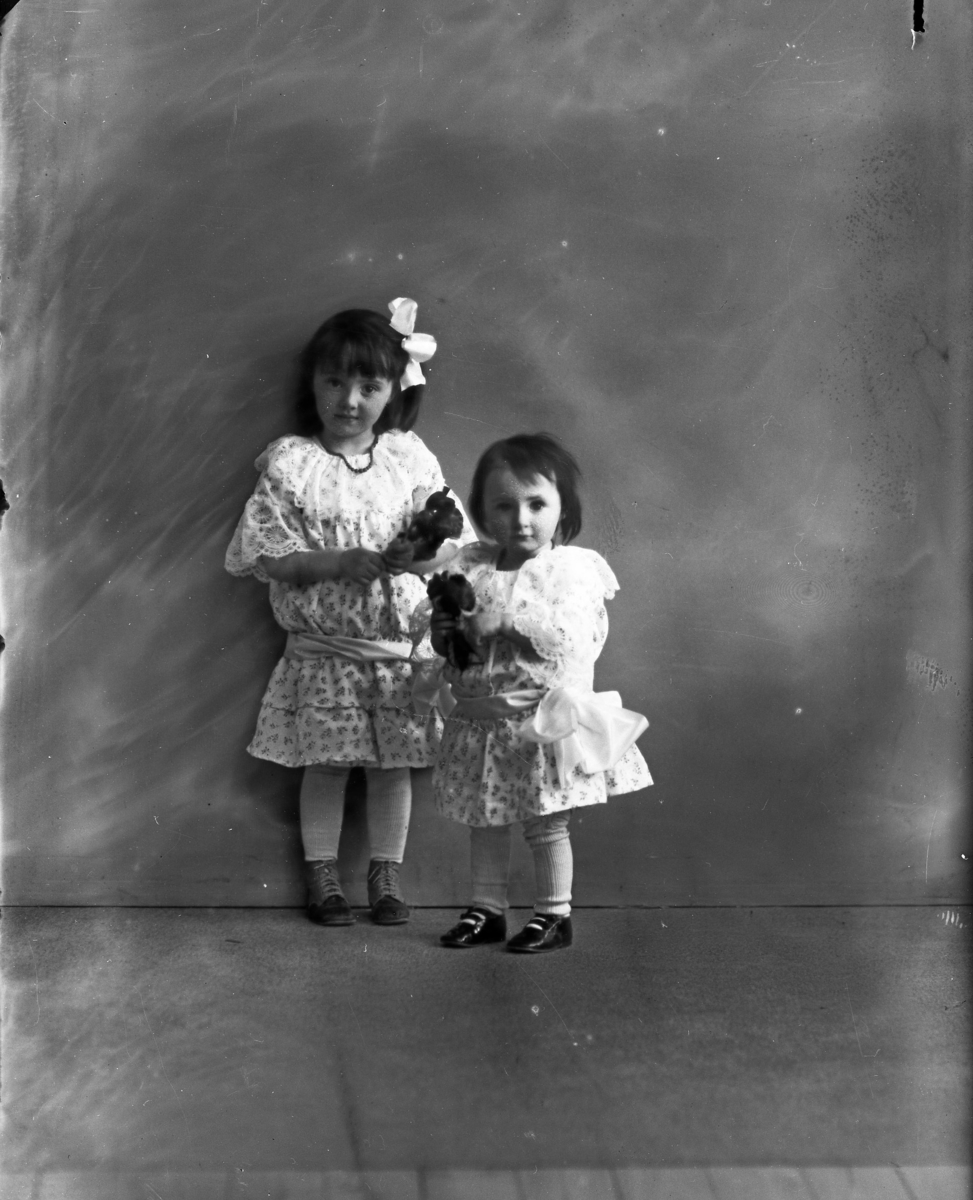 Syskonen Margit och Birgit von Otter. Barn till Helga Maria och Eric von Otter. Glasplåt.