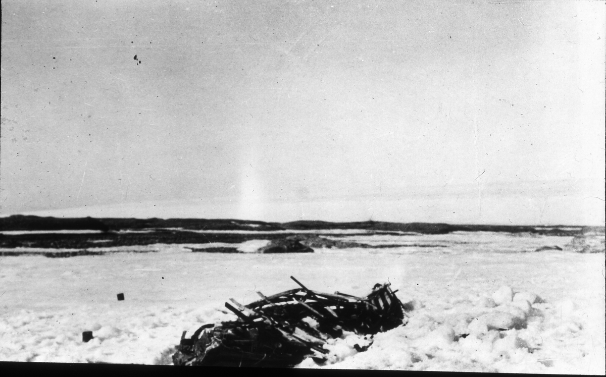 Fynd på Vitön: Andréexpeditionens båt. Diapositiv, glas.
