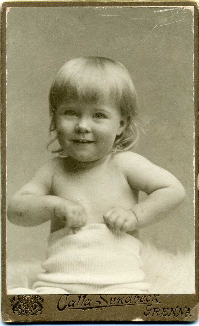 En litet barn med bar överkropp sitter på en ljus skinnfäll.