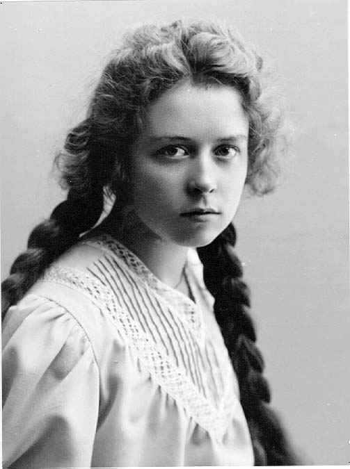 Porträtt av Elsa Löwenadler, en ung flicka med två flätor i håret.