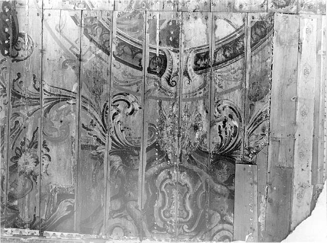 Del av målat paneltak med biblisk scen, troligen "Kristus i Getsemane"