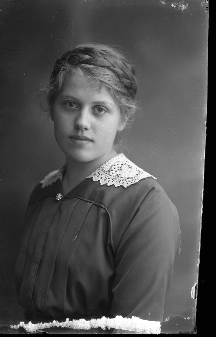Porträtt av en flicka med uppsatt fläta.