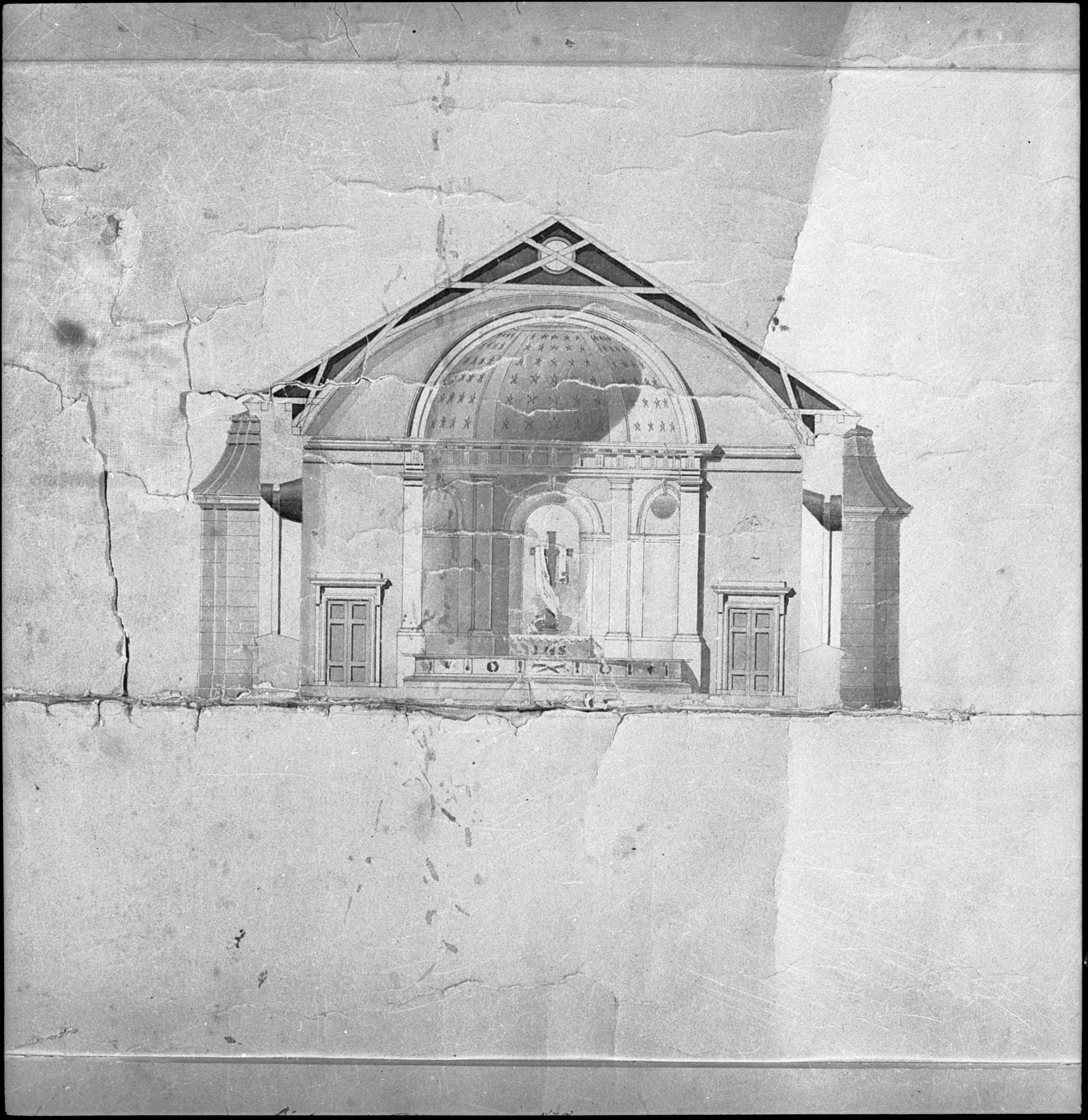 Förslag ny kyrka, foto av ritning.