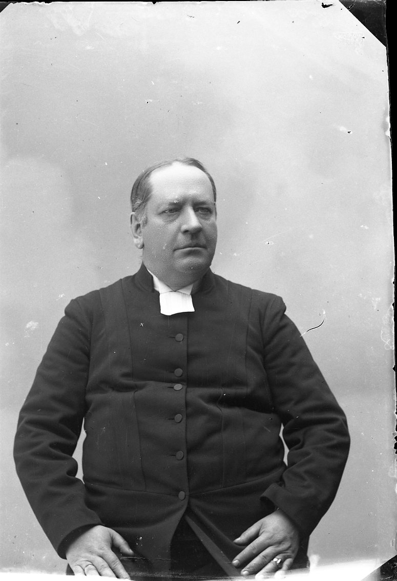 Porträtt av kyrkoherde Holmberg i Gränna, i ämbetsdräkt.
