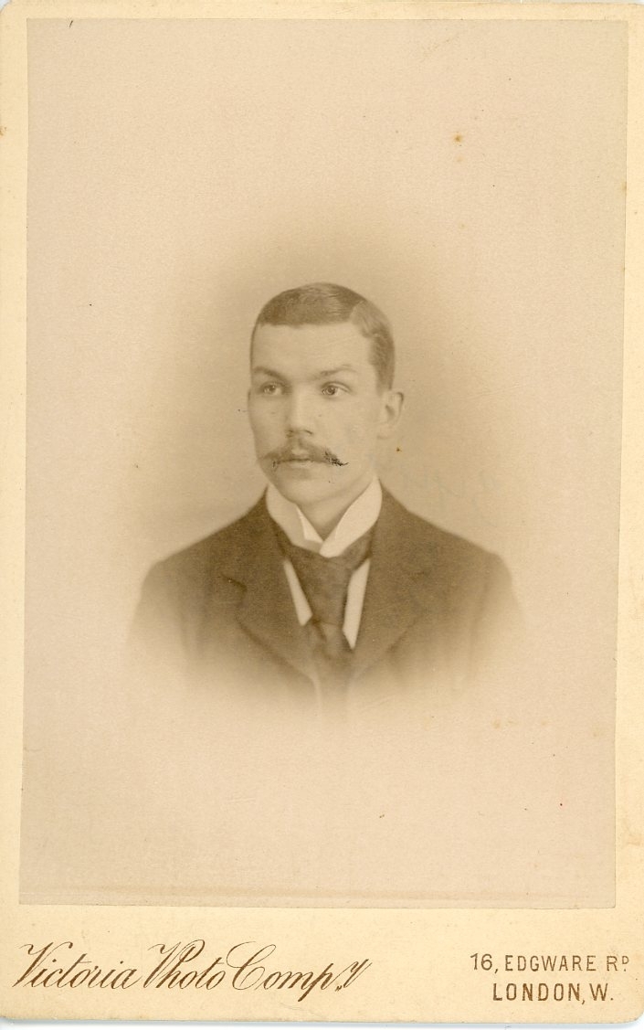 Kabinettsfotografi: en okänd ung man med mustasch.
