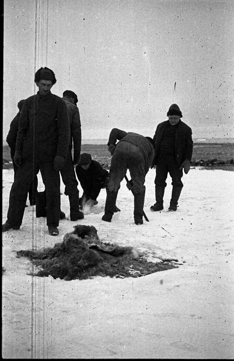 Besättningsmän från Isbjörn vid utgrävning av Andréelägret på Vitön.