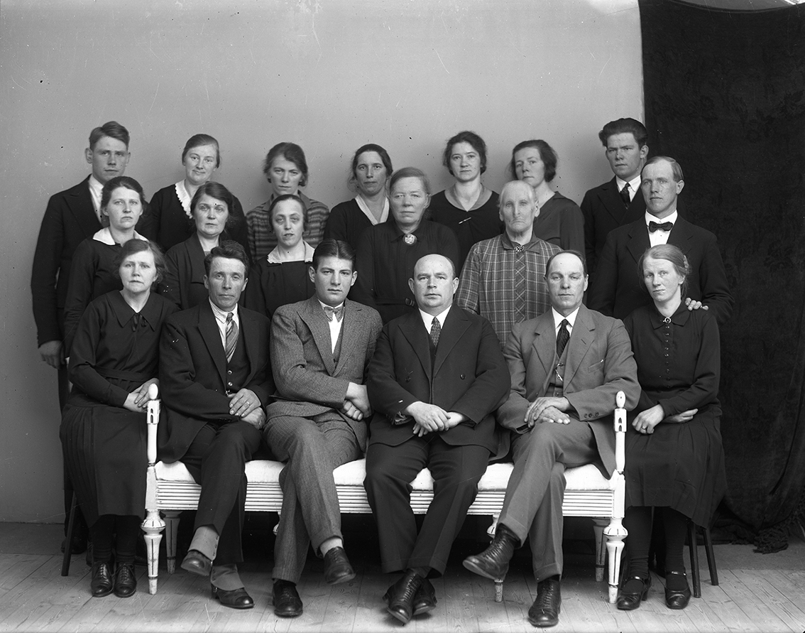 Titel: Gruppbild med kvinnor och män. Det är filadelfiaförsamlingen, troligen i Gränna.