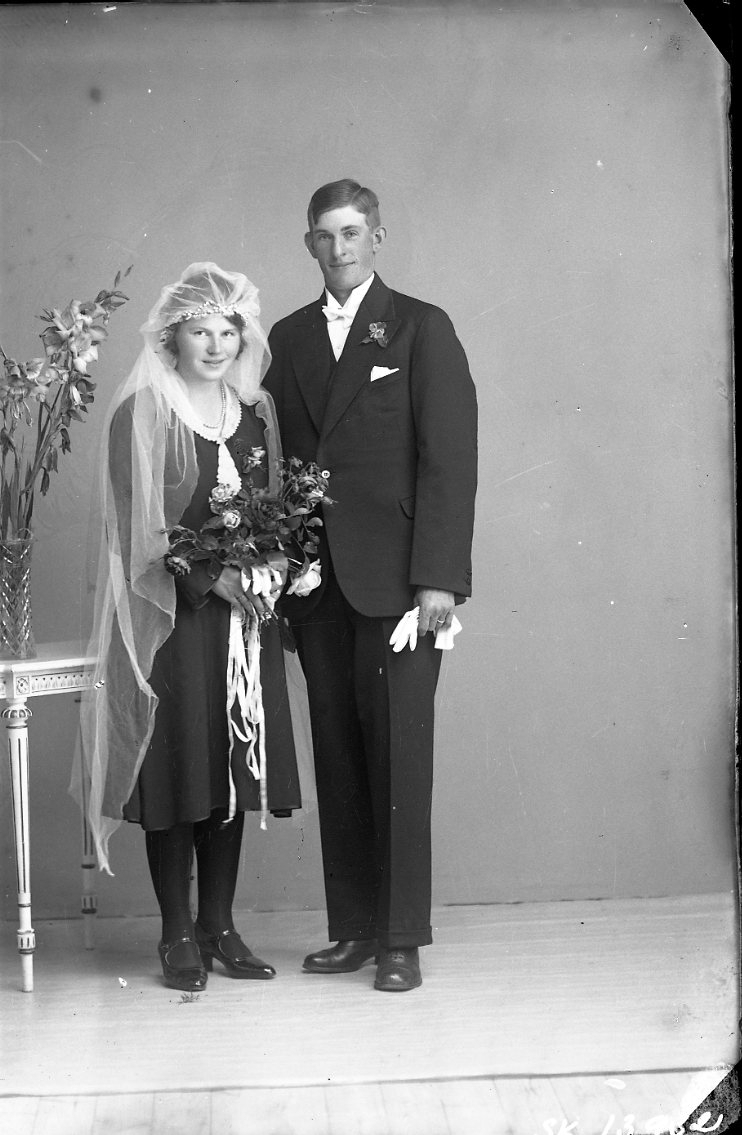 Brudparet Signe Vetter och Ernst Fransson, hon i mörkt.