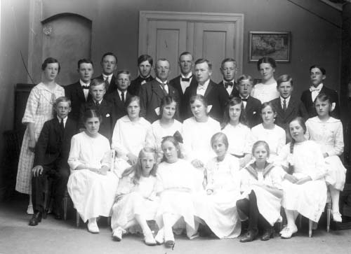 Gruppbild med män, kvinnor och barn.