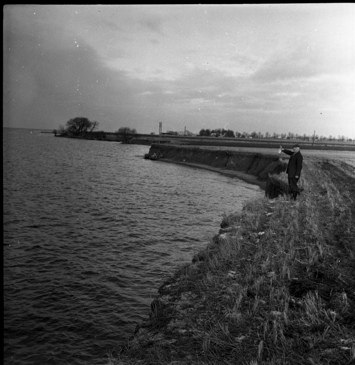 Titel: Bilden föreställer en erosionsdal längst med Vätterns strand. Marken är snötäckt och vattnet är isfritt.