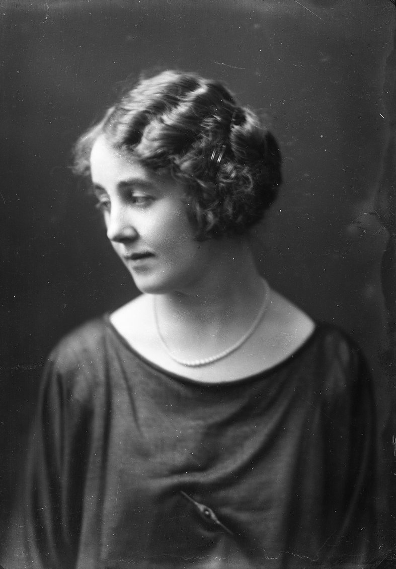 Bröstbild, 3/4-profil, av en oidentifierad kvinna.