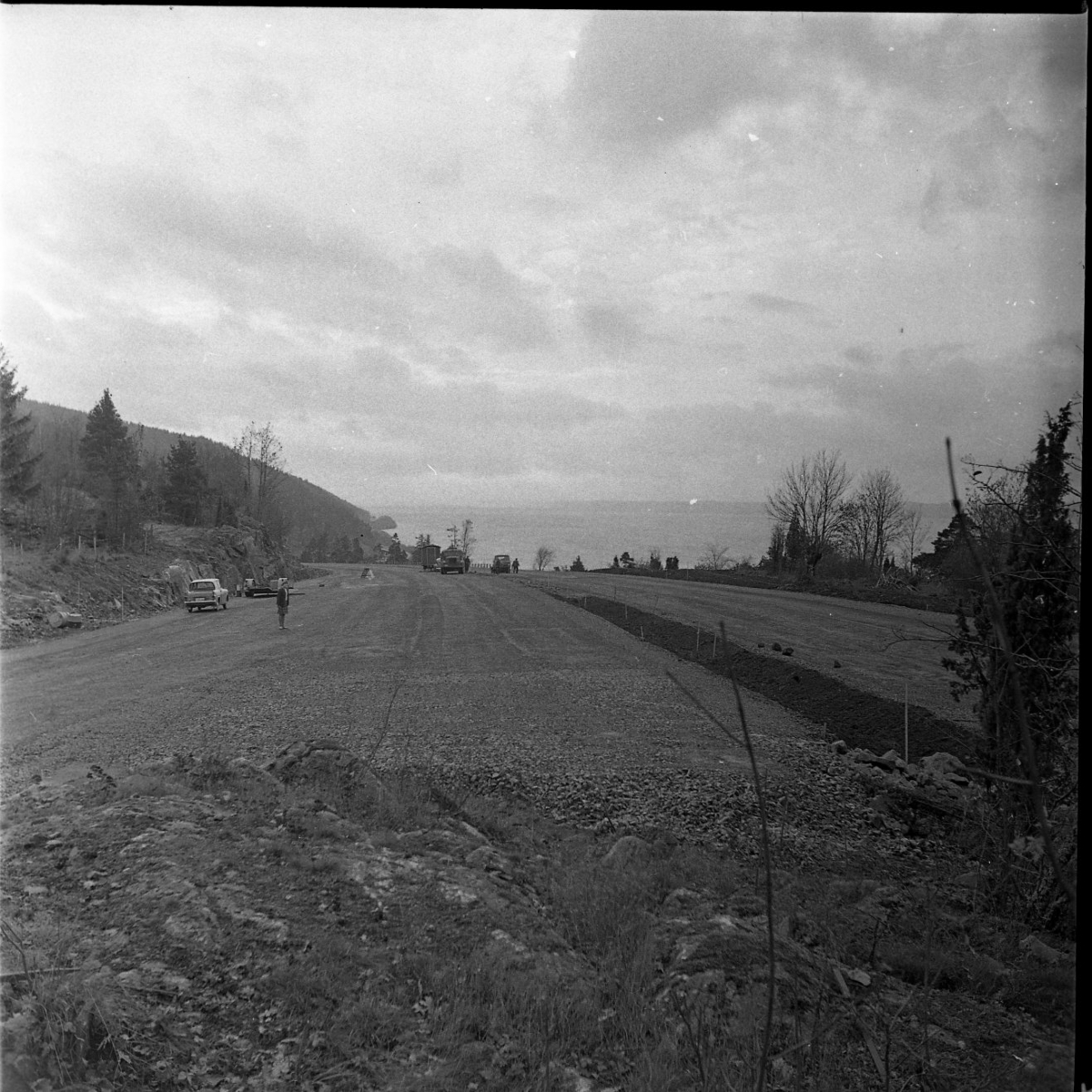 Vy över Vättern och en halvfärdig motorväg. Foto mot söder. Nära nuvarande motell Vätterleden som idag ligger till vänster.