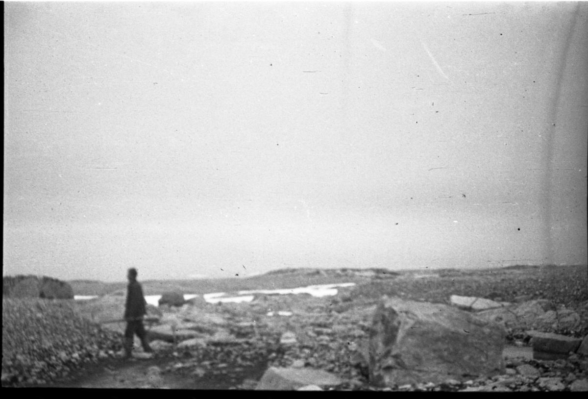 Besättningsman från Isbjörn på Vitön. Sannolikt första landstigningstillfället.