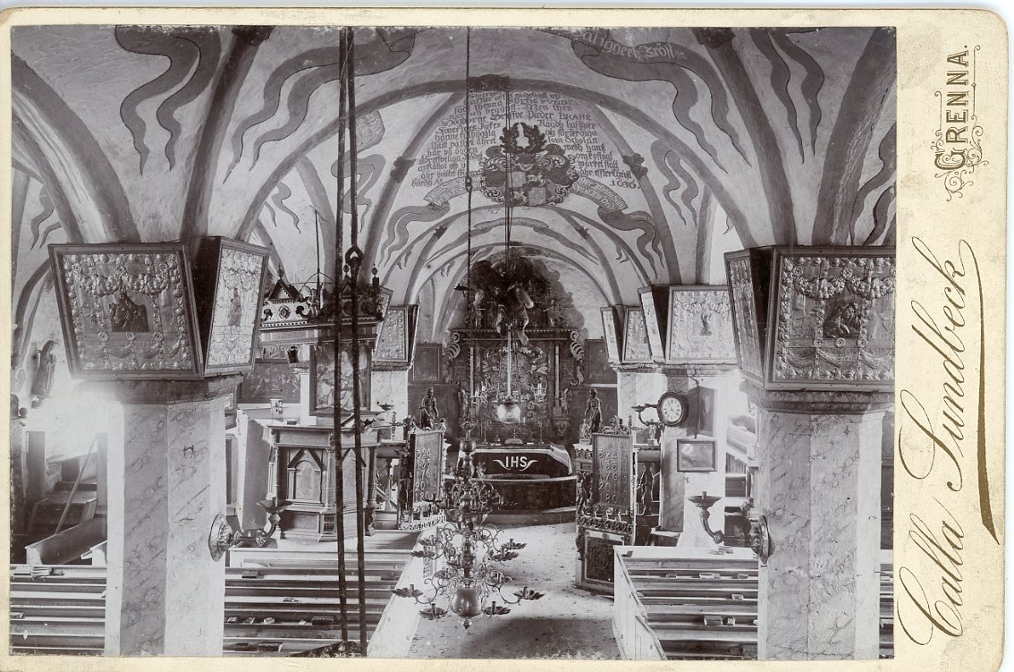 Kabinettsfotografi: interiör från Brahekyrkan, Visingsö.