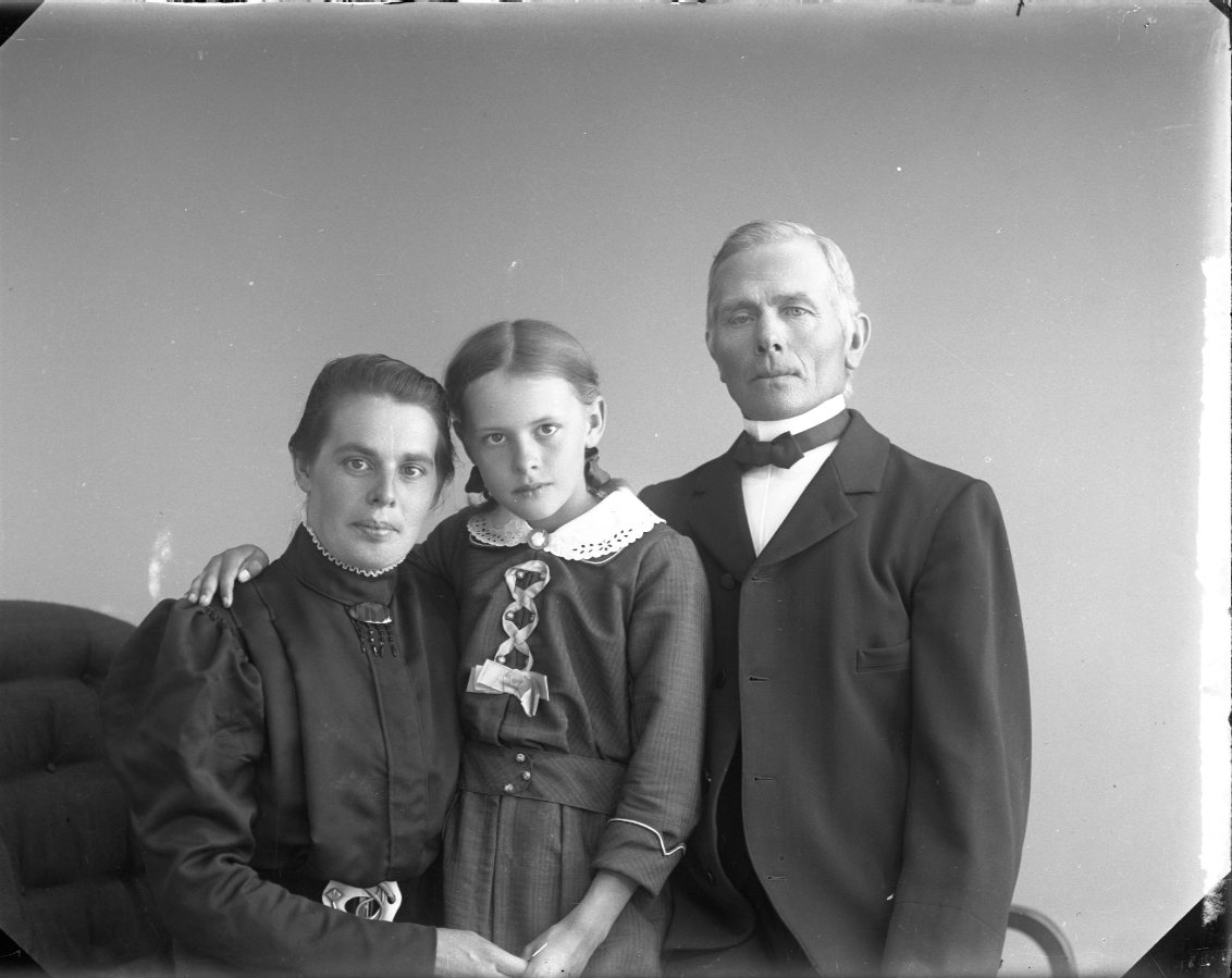 Gruppbild med en kvinna, en man och en flicka stående emellan dem.