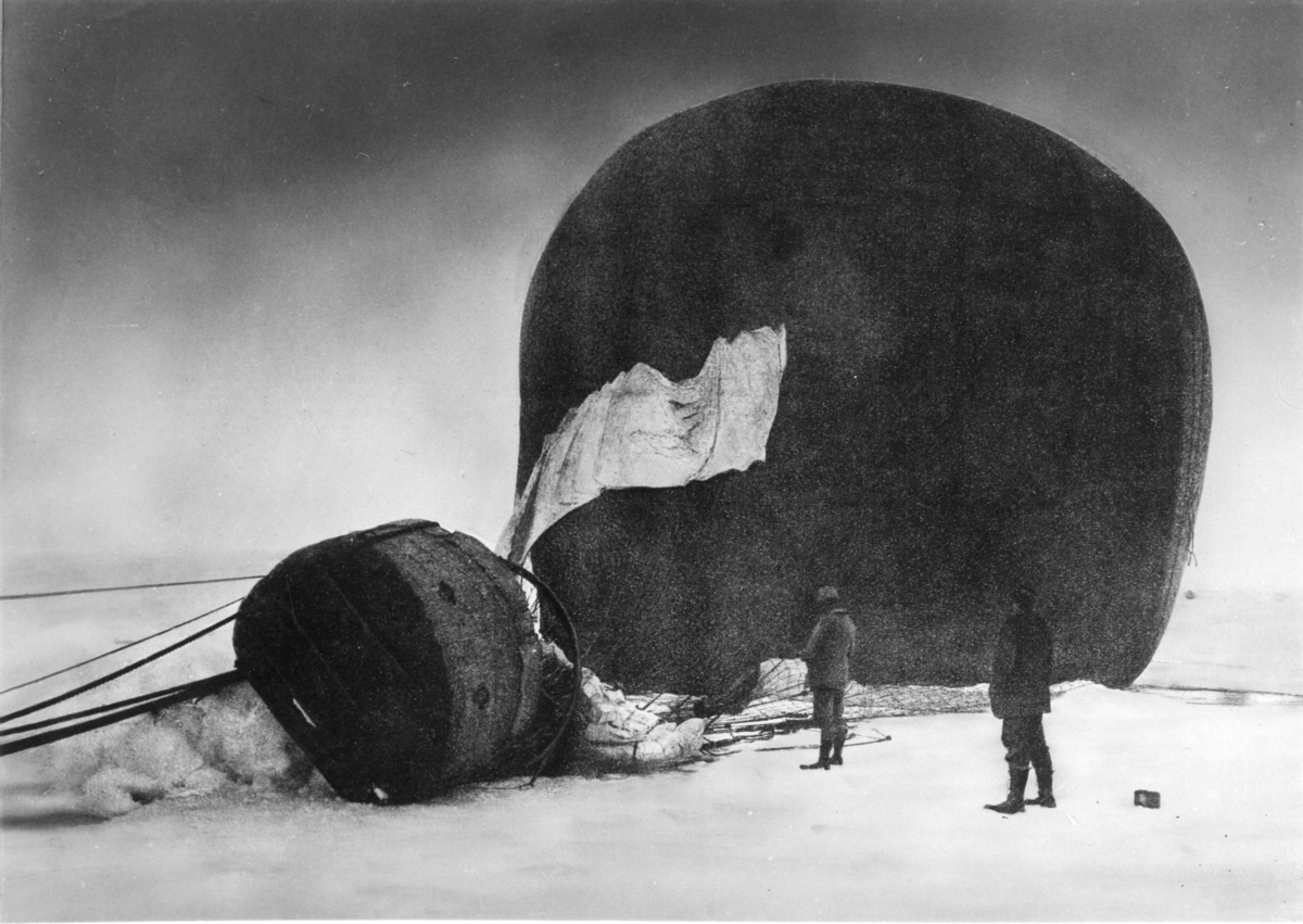 Örnen har landat. K Fraenkel till vänster och S A Andrée till höger. Retuscherad version av gm.II-24.