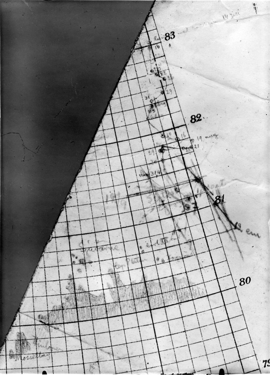 Detalj av N Strindbergs karta över ballong- och slädfärden.