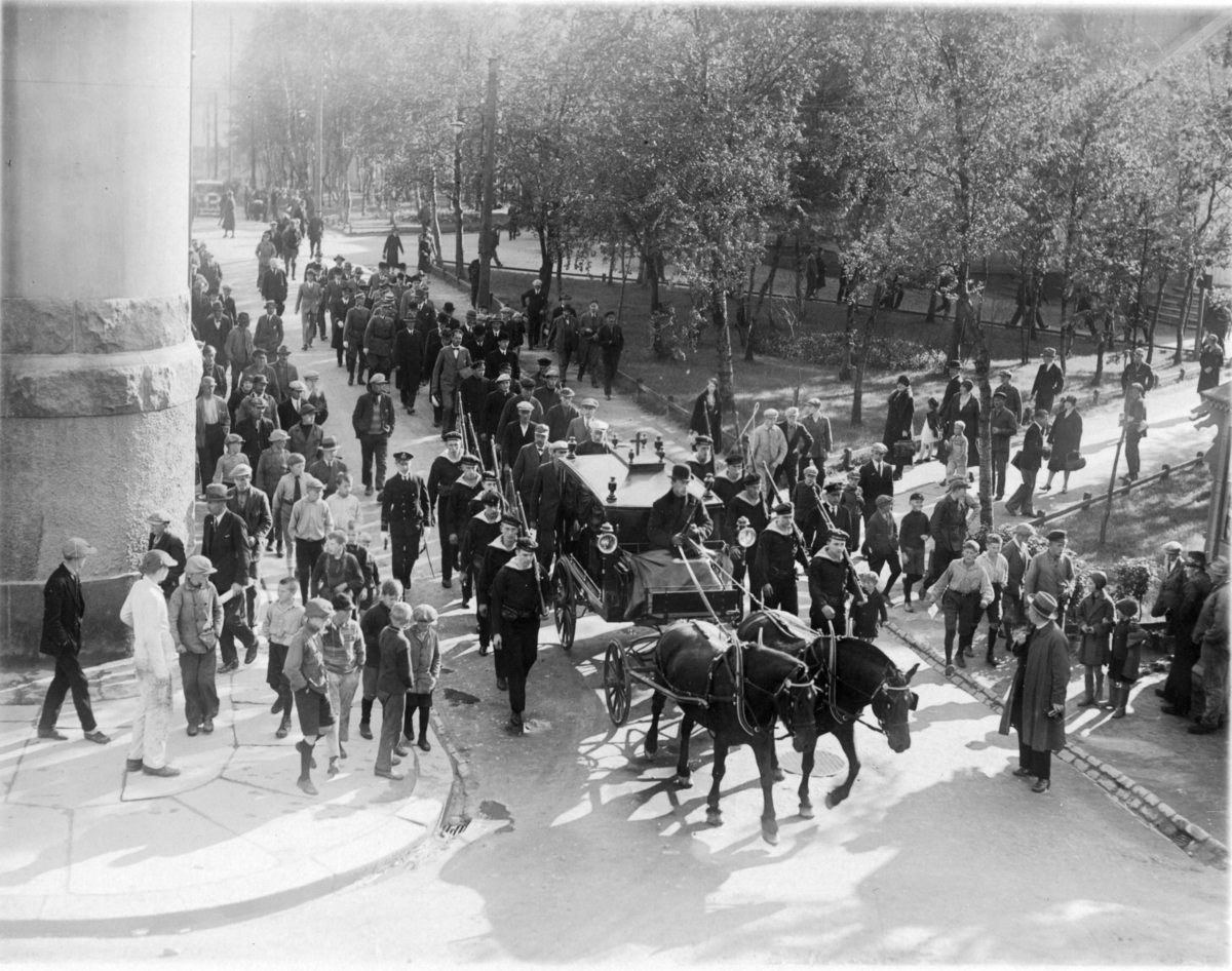 Andrées och Strindbergs lik förs till Kysthospitalet i Tromsö.