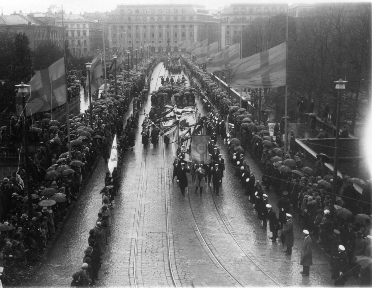 Kortegen med Vitöfynden vid Norrbro på väg till Storkyrkan