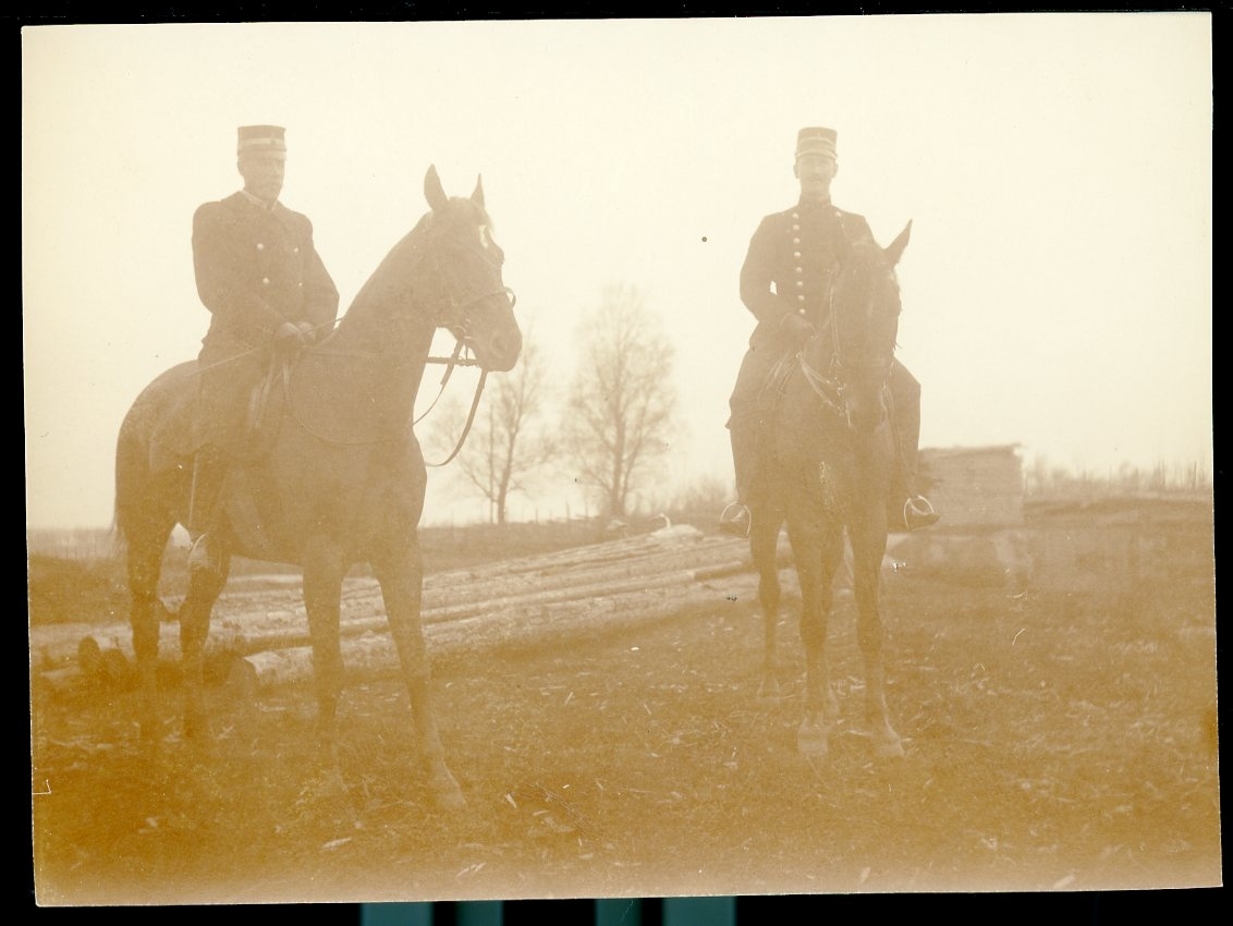 Två officerare till häst. Till vänster sannolikt T Boije Hjertström.
