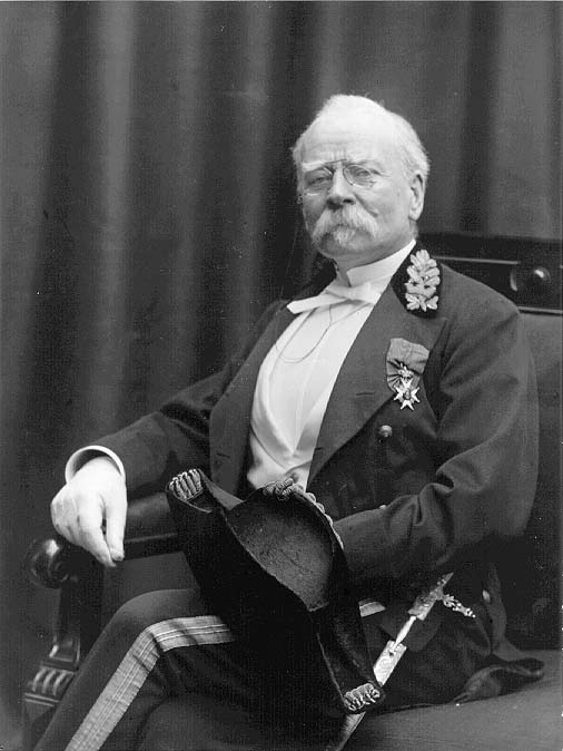 Porträtt av borgmästare V Egnell i ämbetsuniform sittande i en fåtölj.