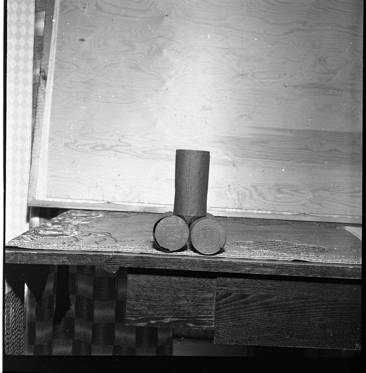 Tre stycken rostiga konservburkarn på ett burk. En står på de andra som ligger ner med värmemärket utåt: "Winborgs Stockholm".