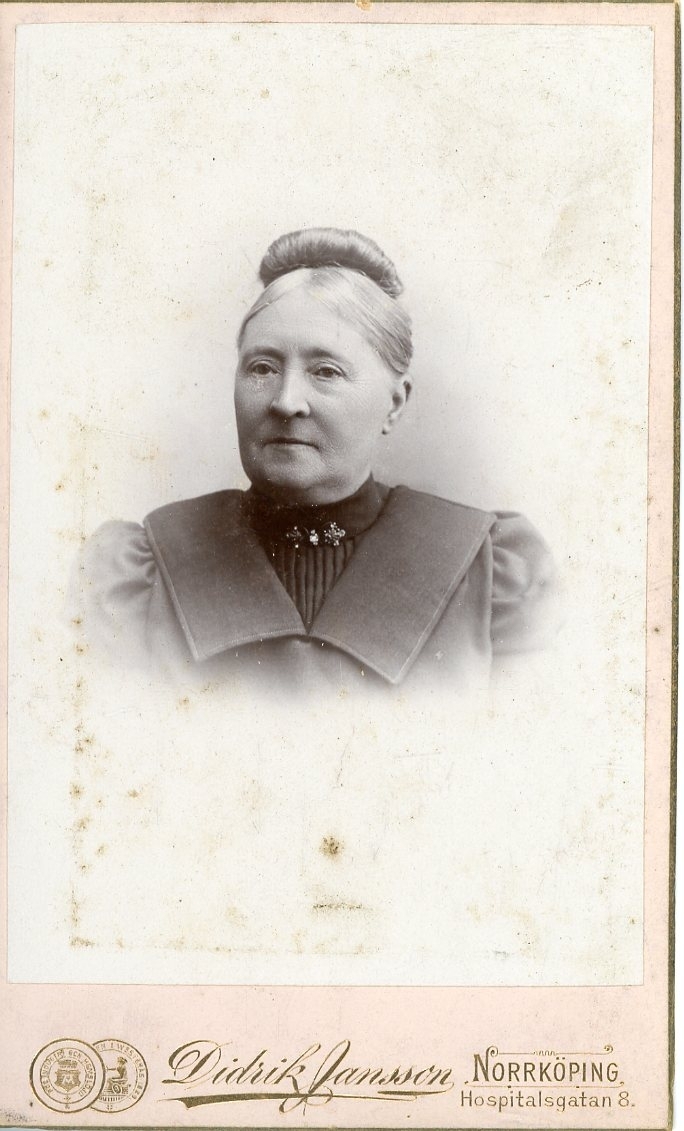 Kabinettsfotografi av en kvinna med håret uppsatt i knut.