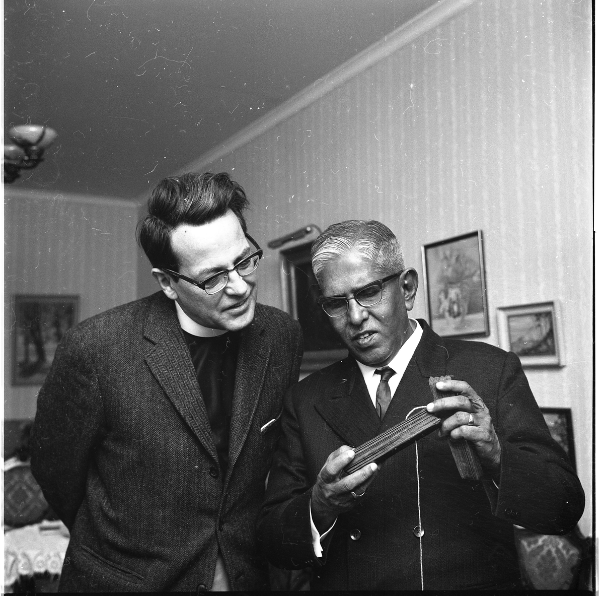 Kyrkoherde Anders Andrén med en man som visar en äldre skrift.