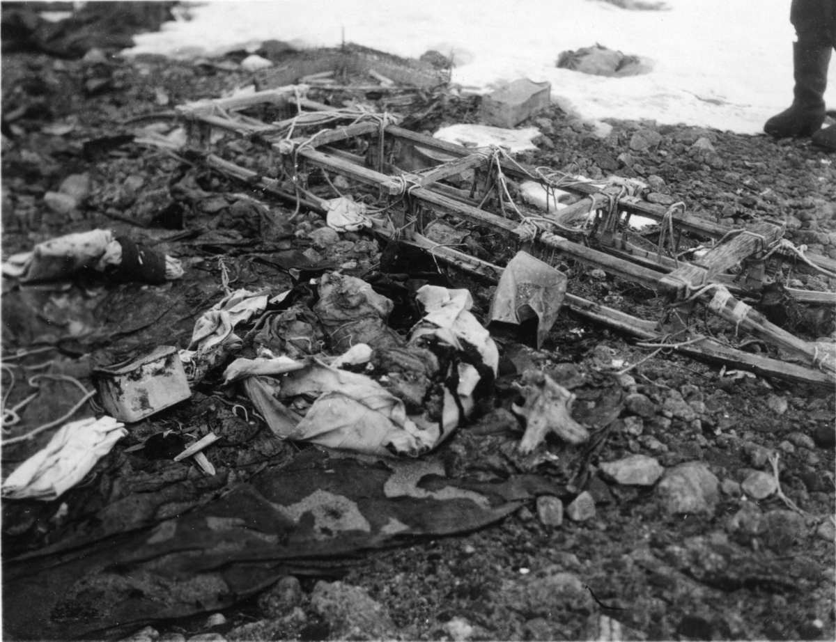 Släde (Strindbergs) med mera vid fyndplatsen på Vitön.