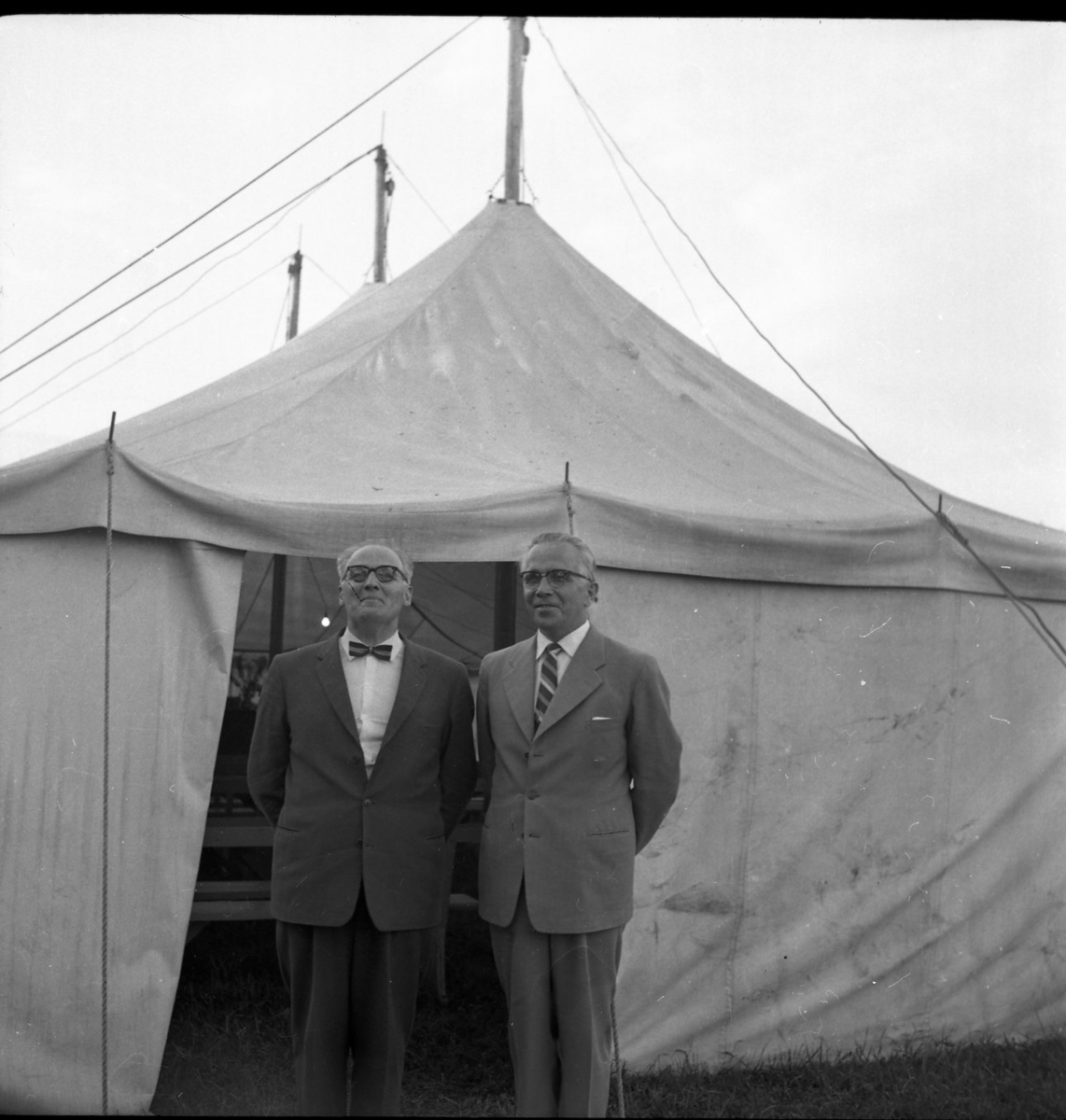 Titel: Två män står framför en tältöppning. Mannen till höger är pastor Robert Svensson.