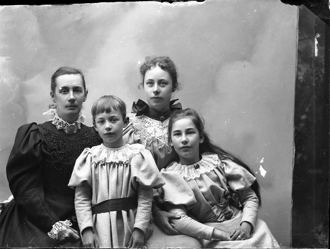Gruppbild med en kvinna och hennes barn, varav en sannolikt Signe.
