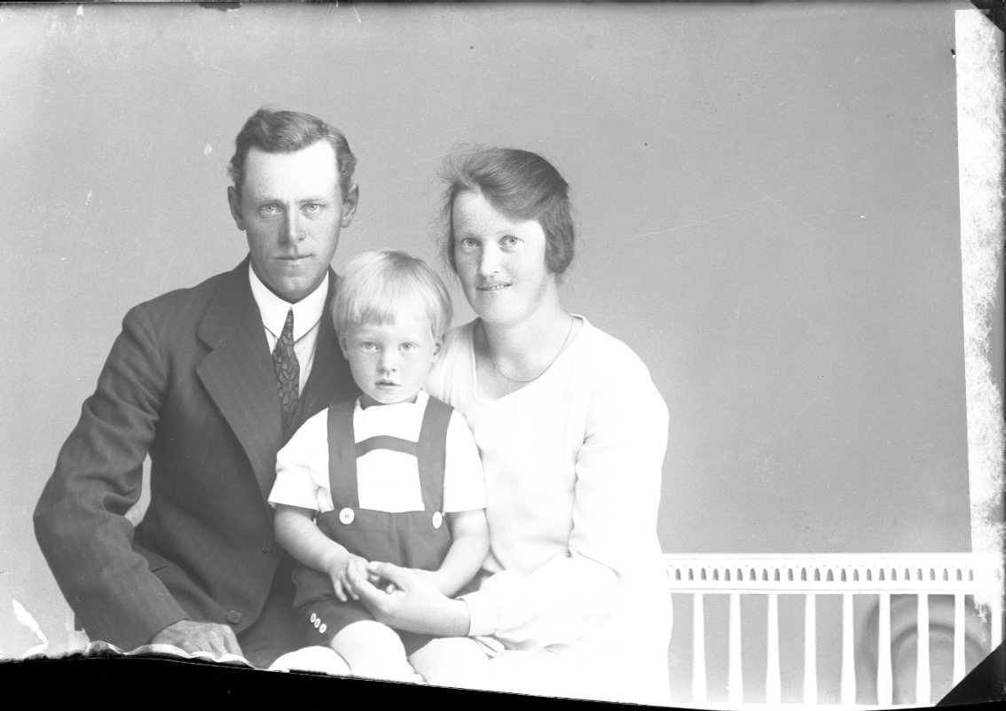 En man och en kvinna sitter med en liten pojke mellan sig.