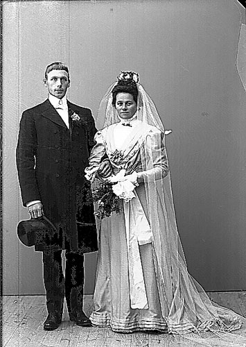 Brudparet Oskar Johansson och Ida Ferdinand, 1909.