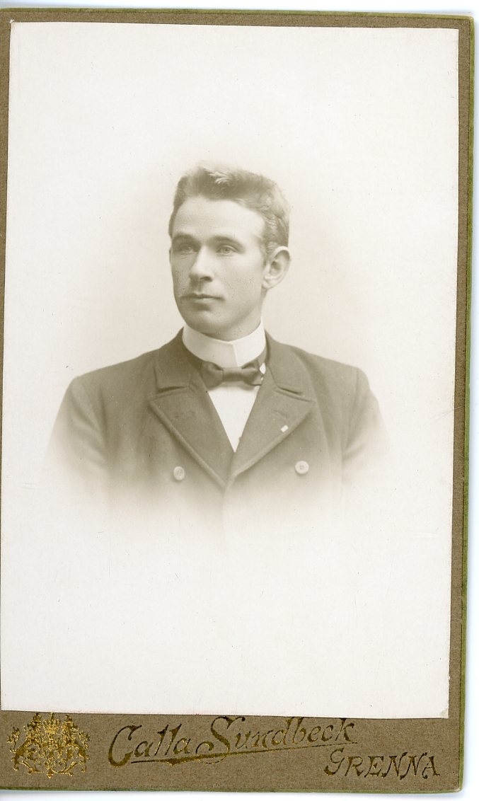 Kabinettsfotografi: en ung man med fluga runt halsen.