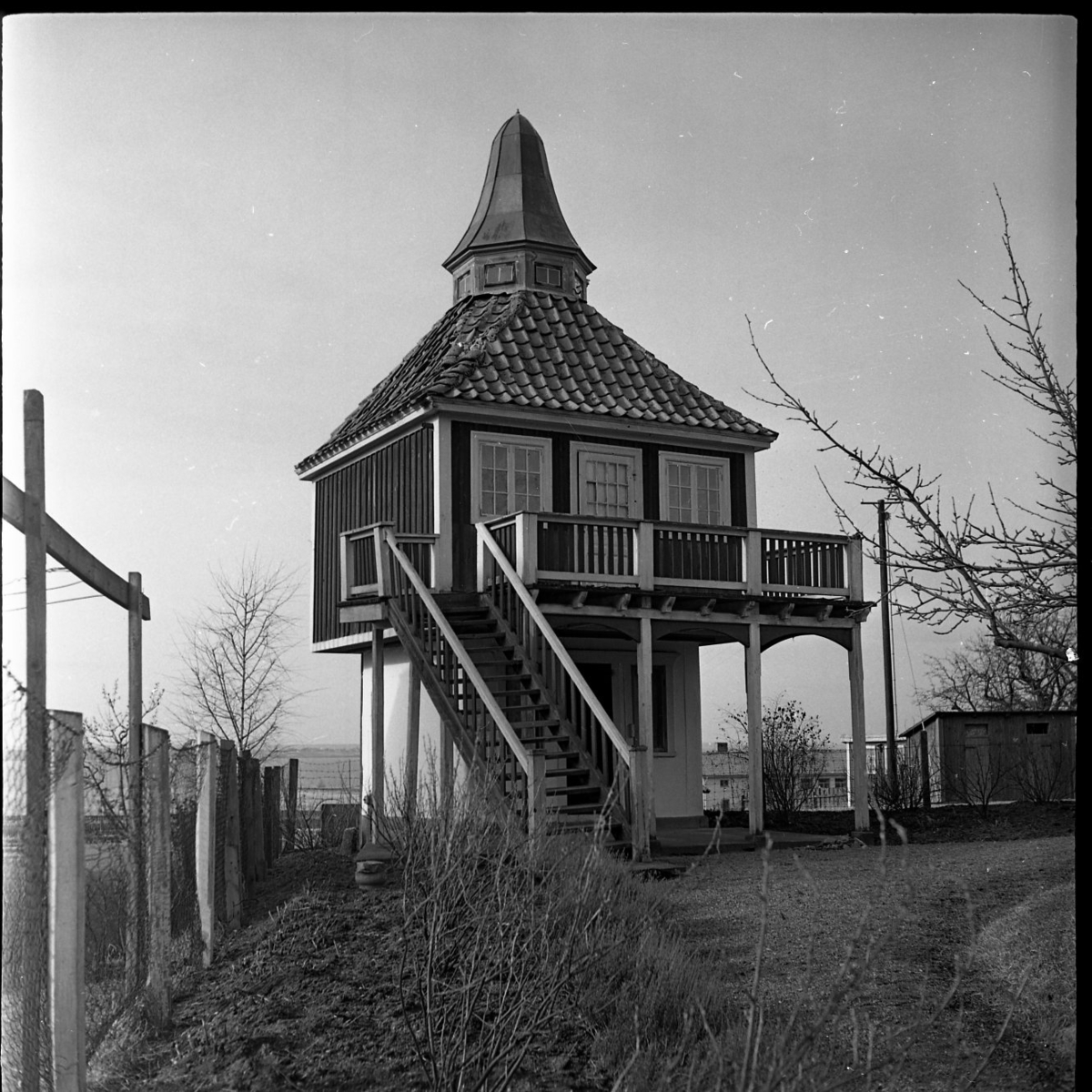 Den så kallade Punschveranden tillhörande Ribbagården. Ett lusthus med balkong byggt ovanpå en mindre putsad, kvadratisk byggnad.