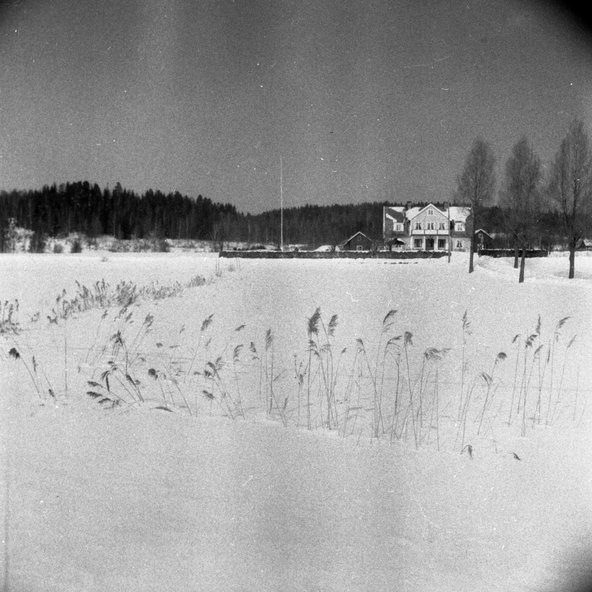 På avstånd syns Örserum Västergården. Det är vinter och snö.